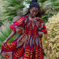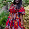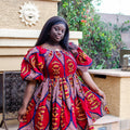 JOJO AFRICAN PRINT SMOCKED PUFF SLEEVE DRESS