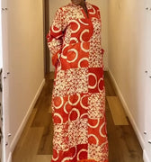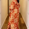 Bring the brilliance of African artistry into your wardrobe with the Adire Patch Kaftan in Sunset Flame. Hand-dyed in a striking blend of fiery red and crisp white, this kaftan radiates energy, elegance, and cultural pride.