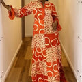 SIKA ADIRE PATCH KAFTAN - SUNSET FLAME WITH ASO OKE FRINGE - LUXE AFRICAN MAXI