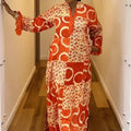 Designed as a one-size-fits-most maxi, it combines comfort and drama, perfect for resort lounging, evening occasions, or cultural celebrations.