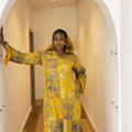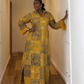 SIKA GOLDEN ADIRE PATCH KAFTAN WITH ASOKE FRINGE - LUXE AFRICAN MAXI