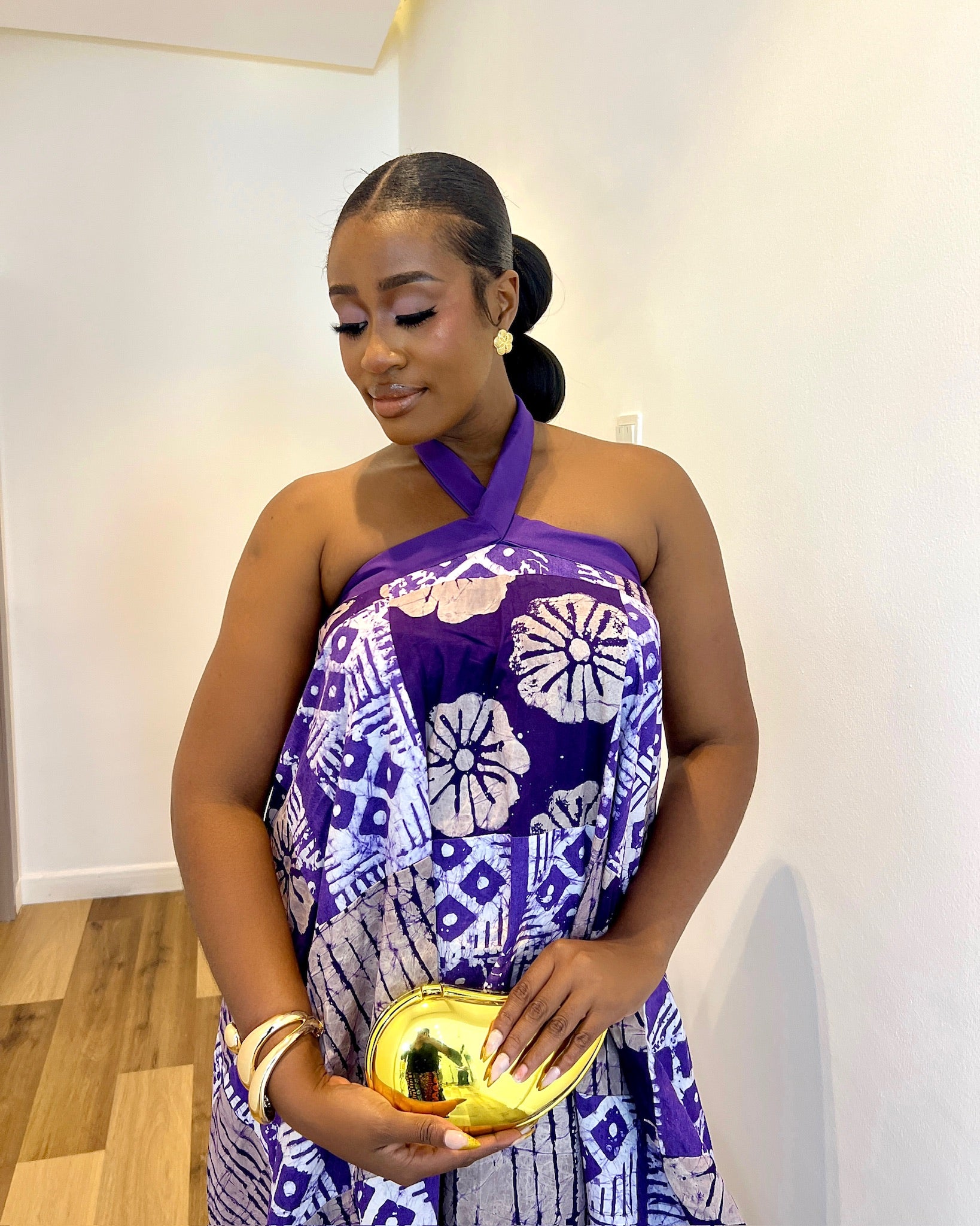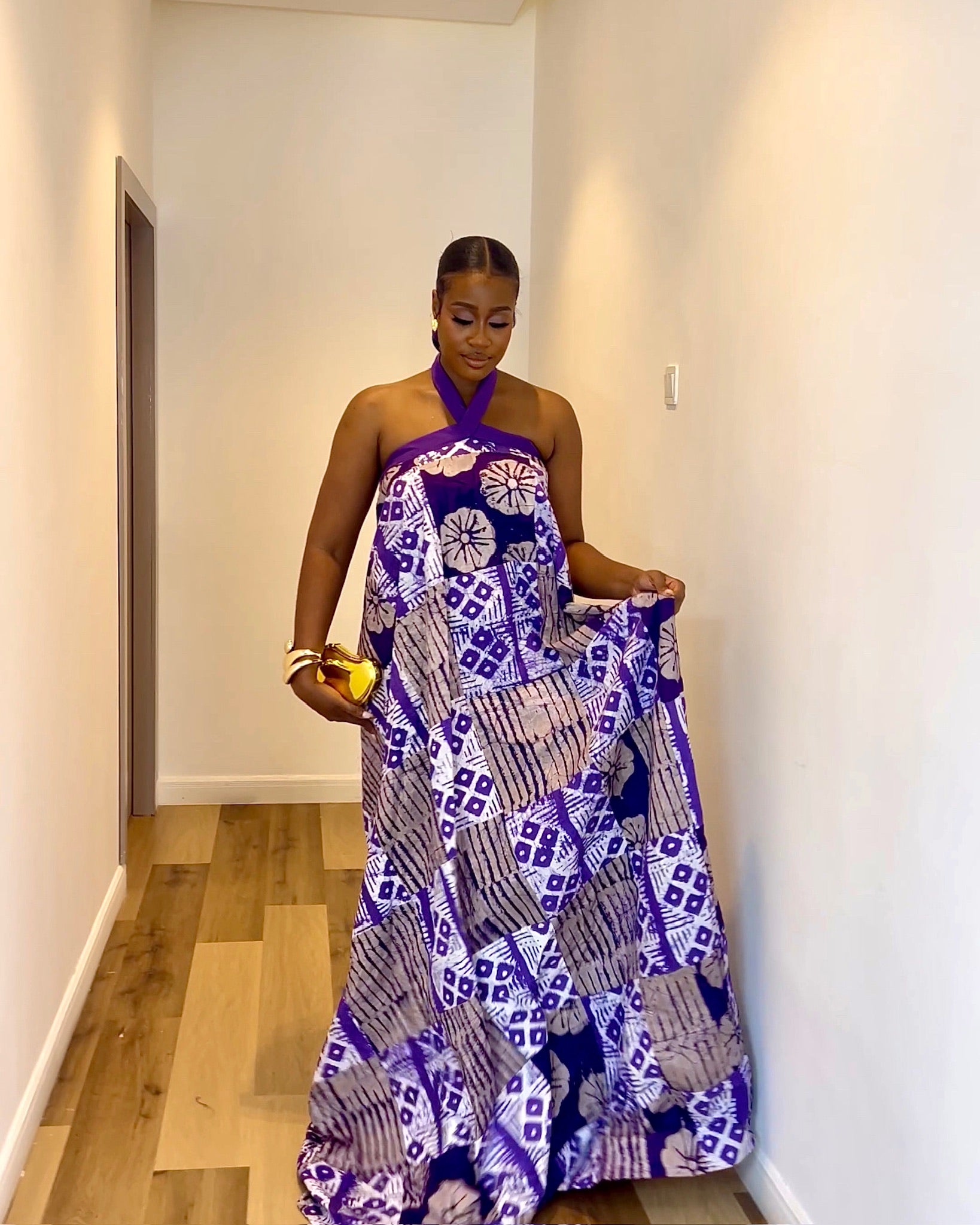 MORENIKE ADIRE HALTER MAXI DRESS – INDIGO & WHITE HAND-DYED BEAUTY