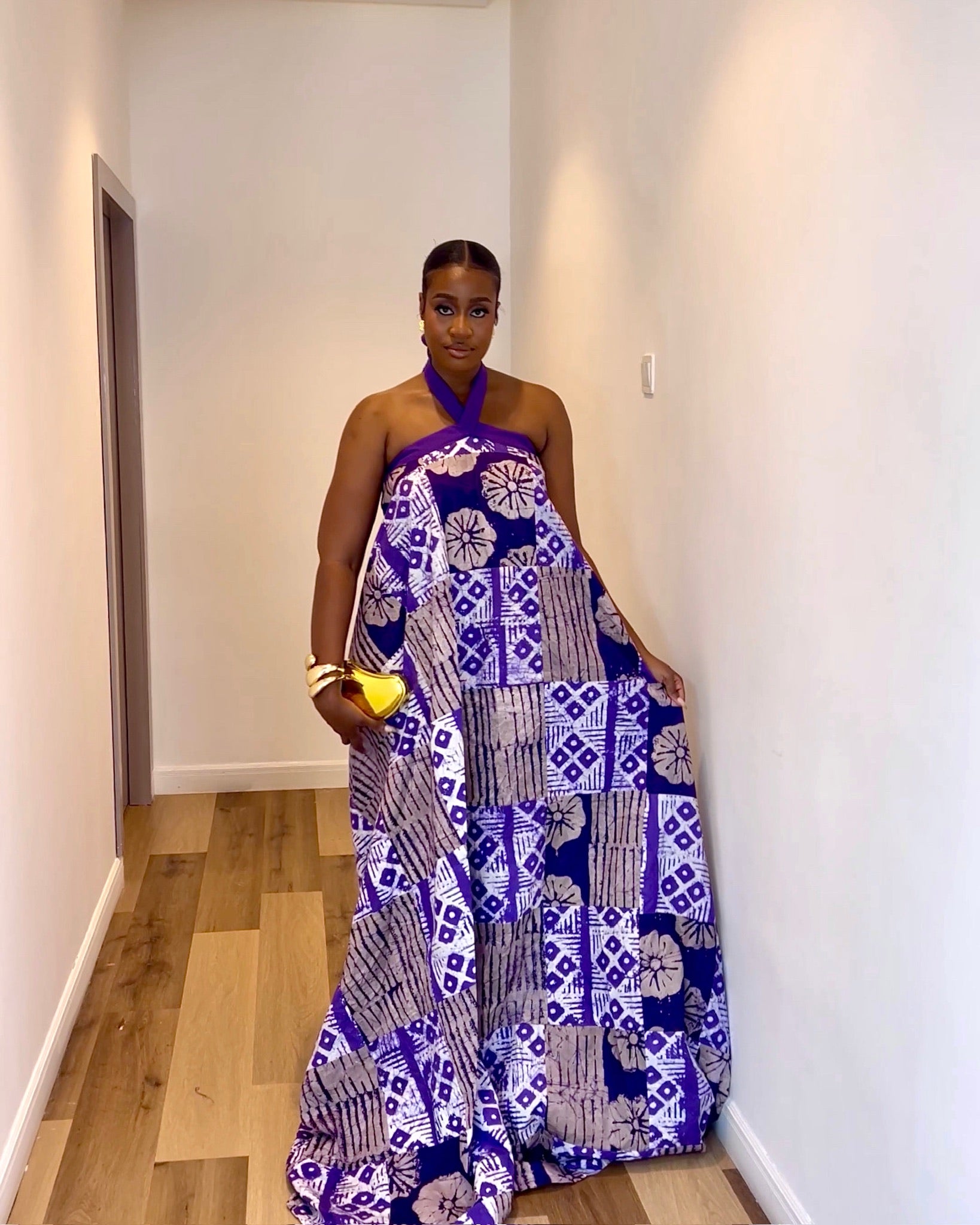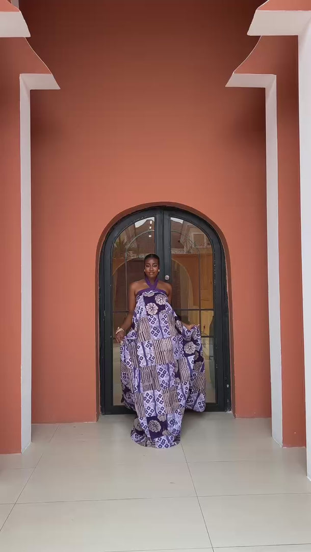 Turn heads in our Adire Halter Maxi Dress, a stunning blend of African heritage and modern elegance. Crafted from 100% cotton and hand-dyed by skilled Nigerian artisans, this flowy silhouette features a flattering halter neckline, breezy maxi length, and unique indigo-and-white patterns that ensure no two dresses are ever the same.