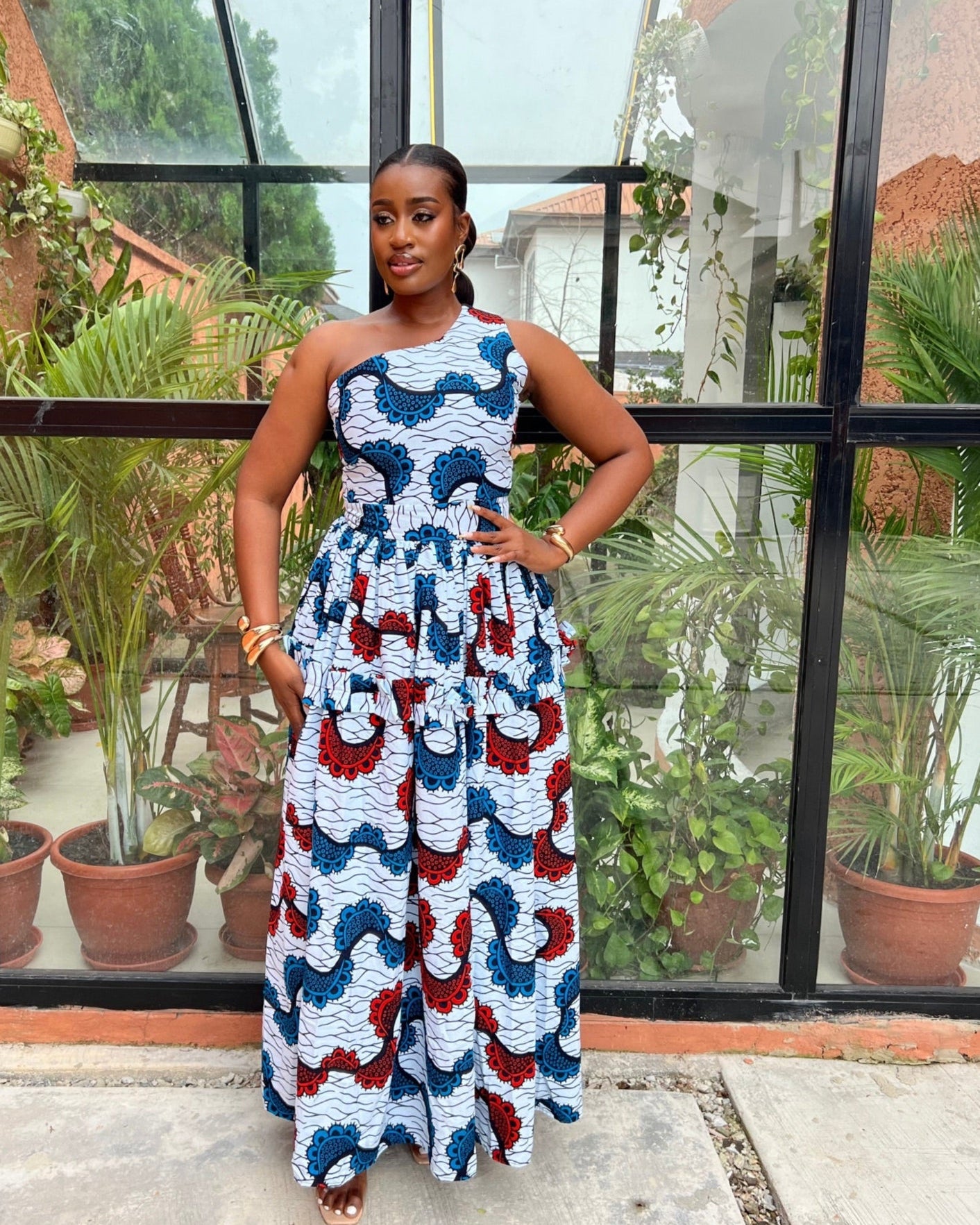 SARFOWAA ONE SHOULDER ANKARA PRINT MAXI DRESS