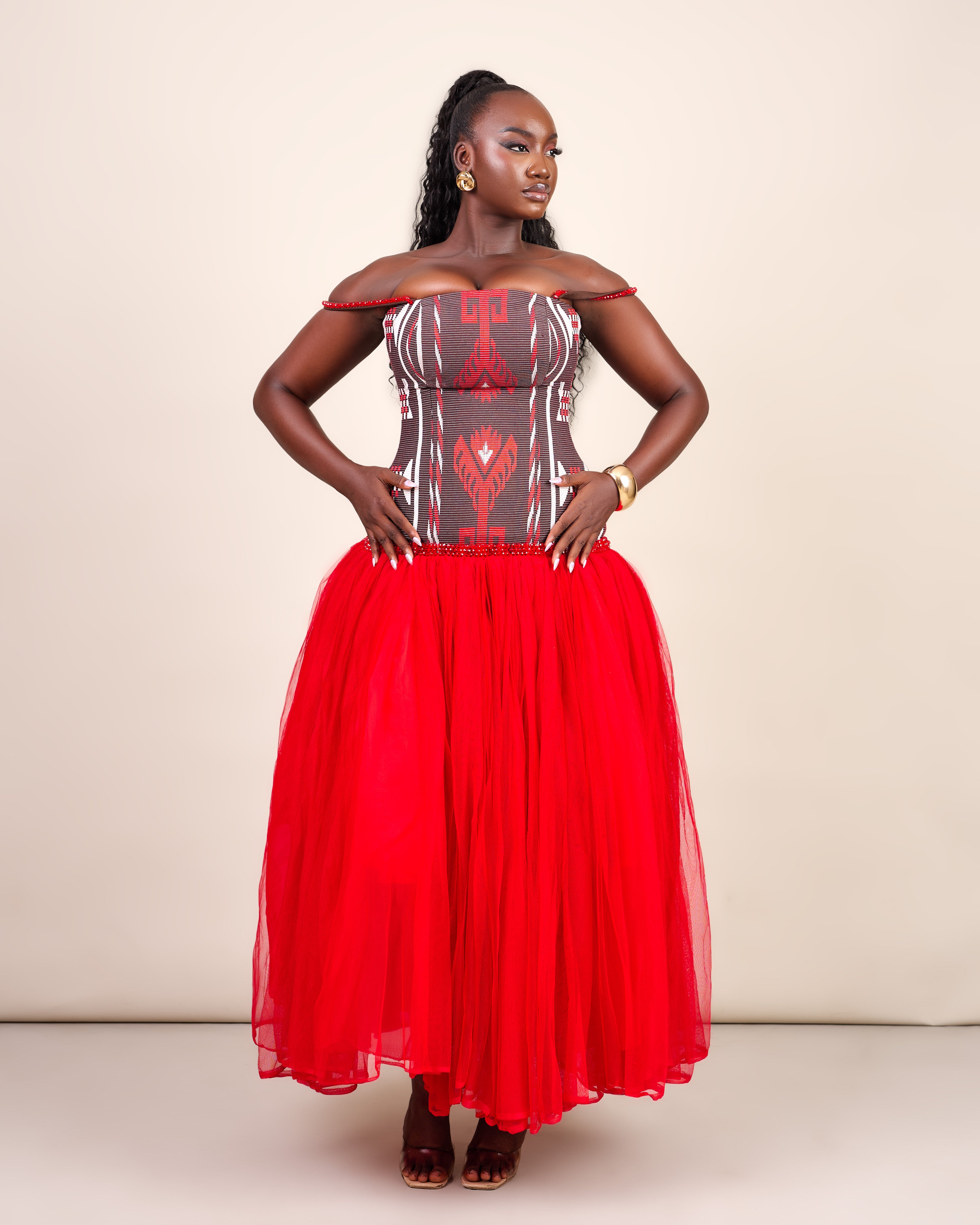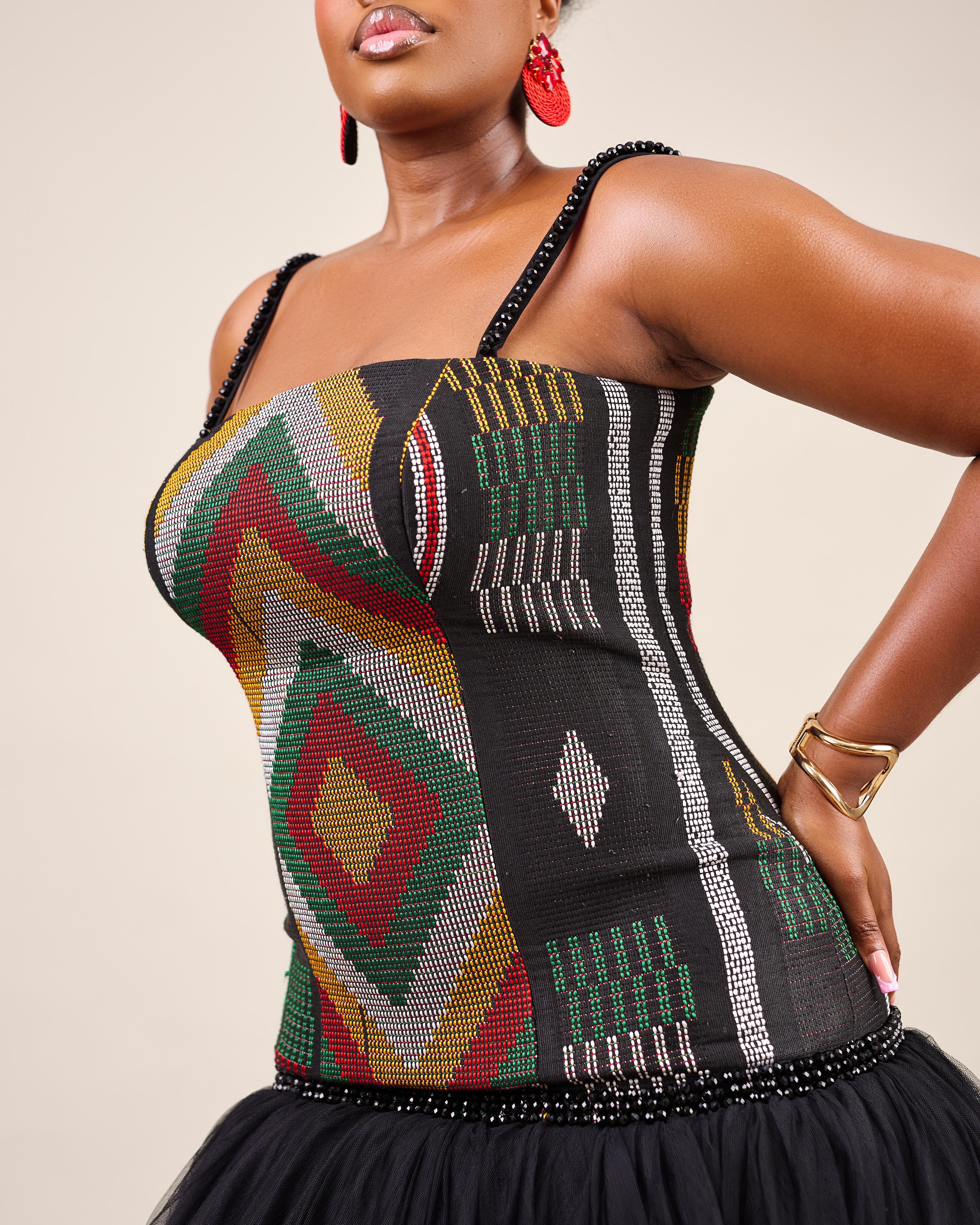 SANKOFA DRESS - LUXURY HANDWOVEN AKWETE CORSET WITH TULLE SKIRT