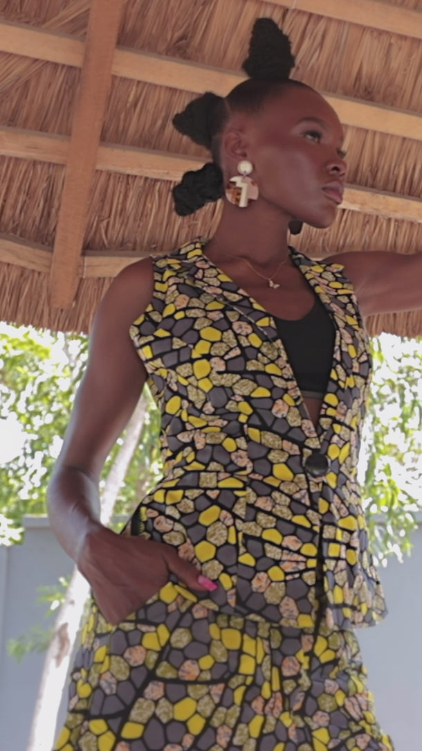 The KOSIWA African Print Shorts Set Is Just Chic And Versatile. This Gorgeous Multi-Colored Ankara Shorts And Vest Style Top Can Take You From Morning To Night, In A Casual or Dressy Environment With Just A Change Of Shoes And Accessories. Be Ready for The Compliments! Look Unique And Beautiful.