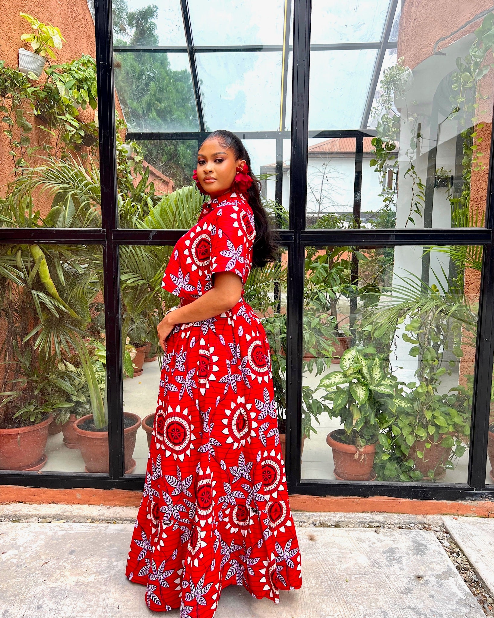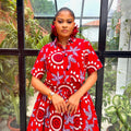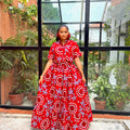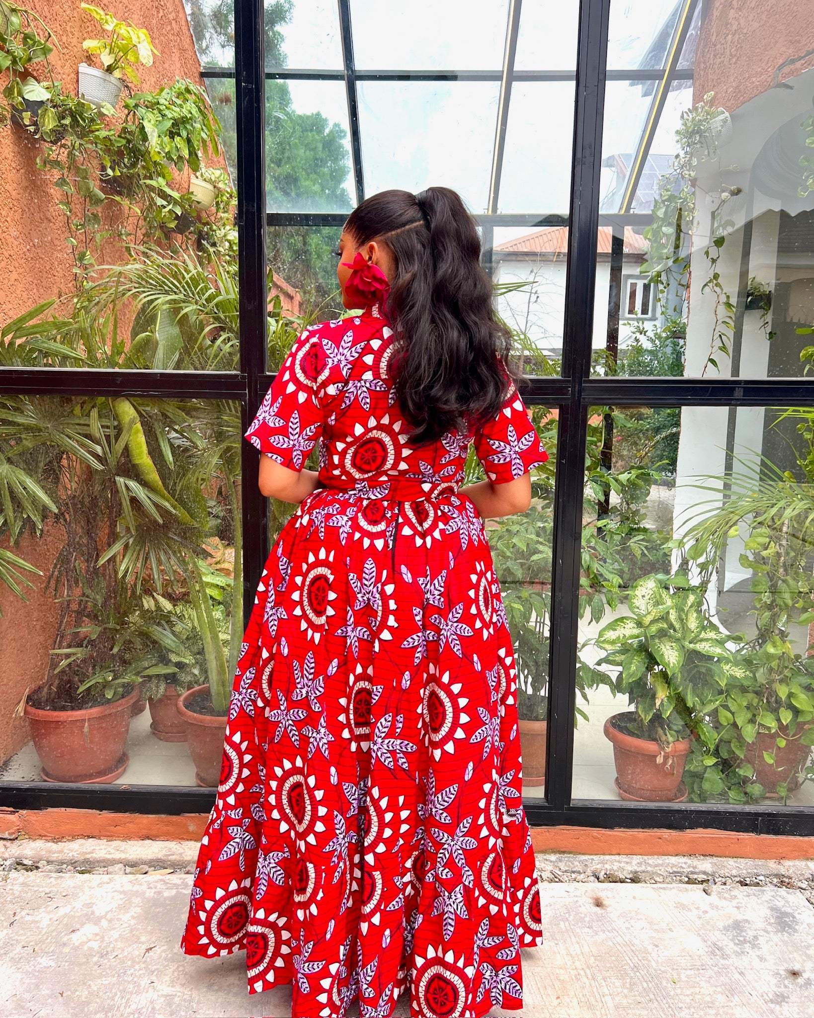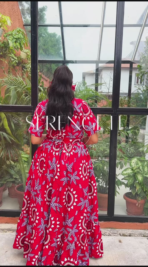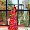INDYA RED ANKARA PRINT SKIRT & BLOUSE SET. AFRICAN TWO-PIECE MAXI OUTFIT