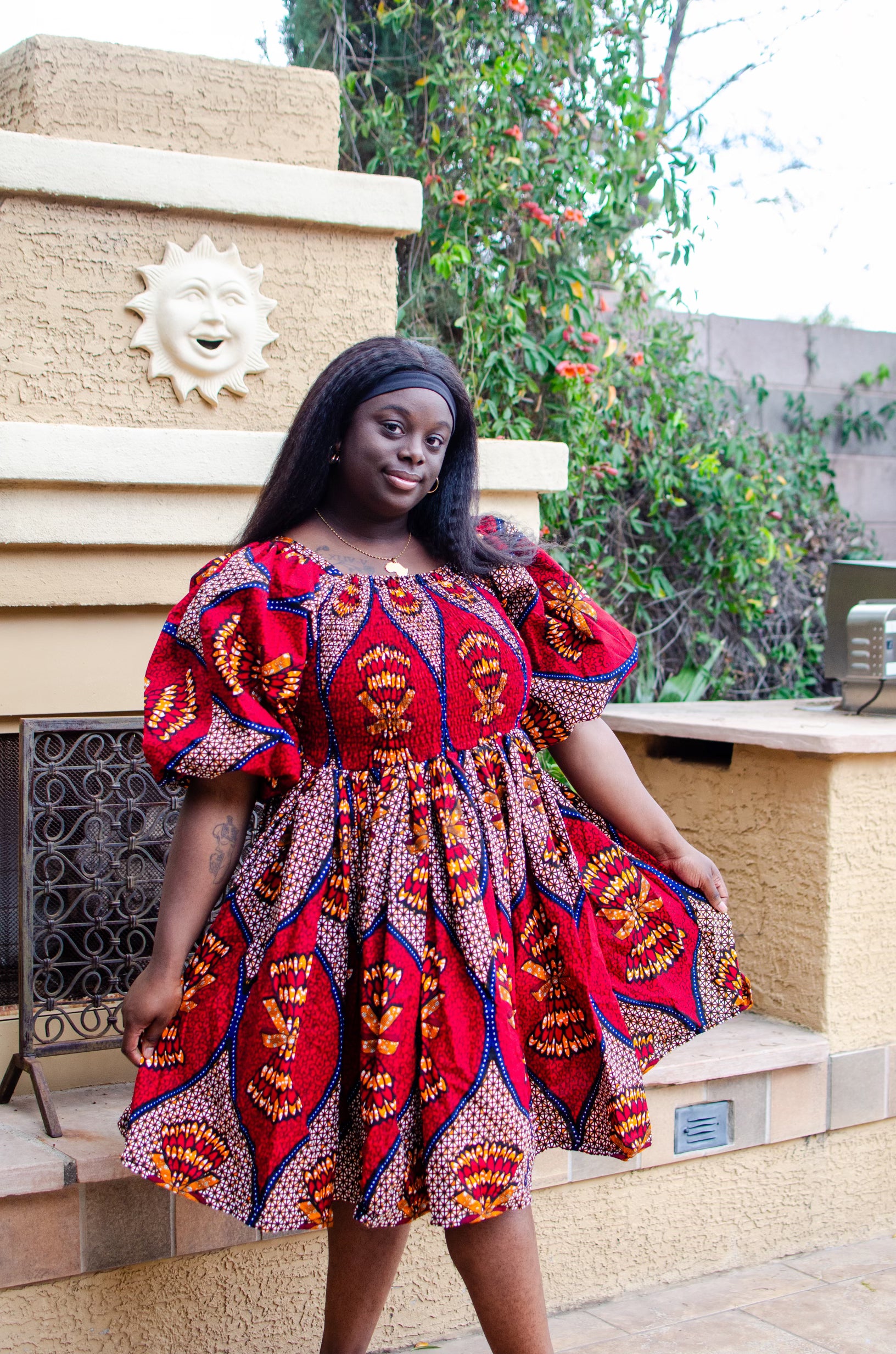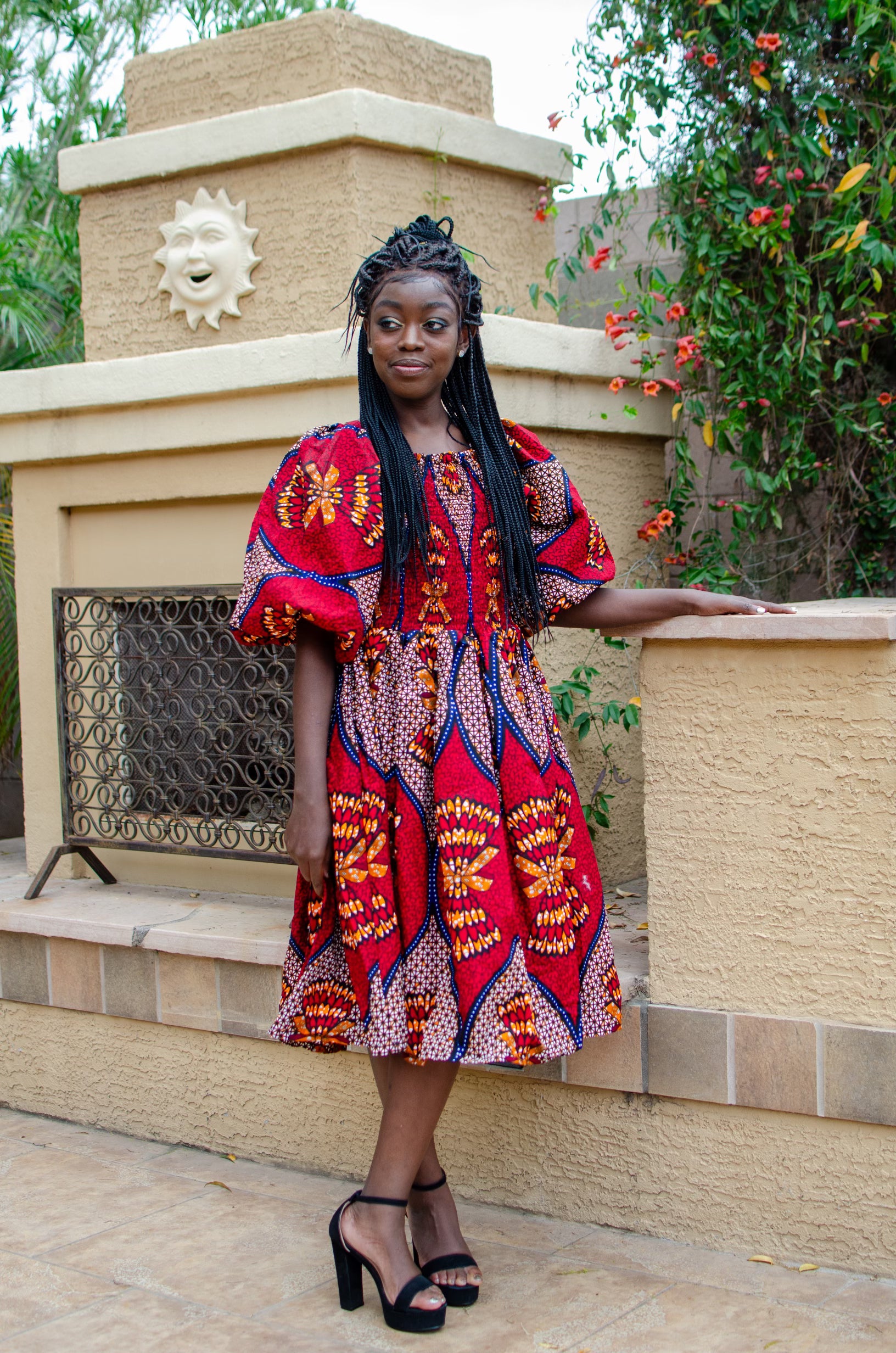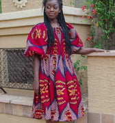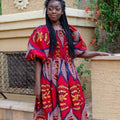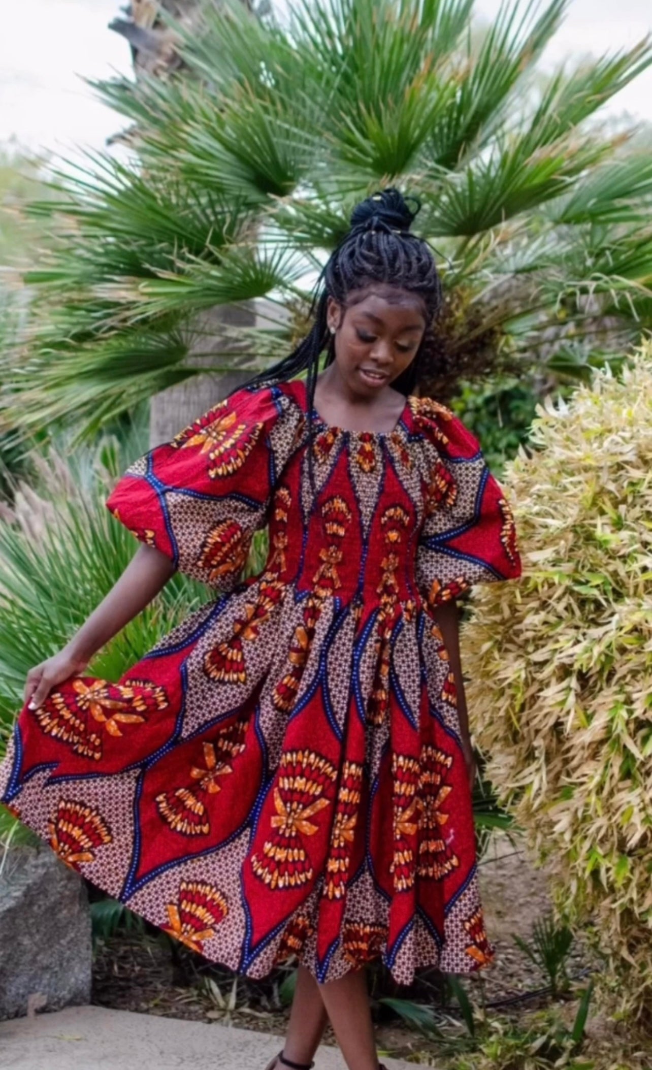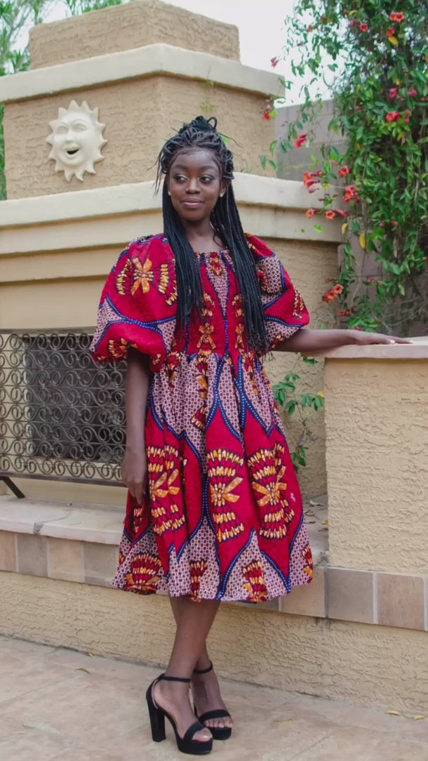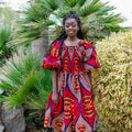 JOJO AFRICAN PRINT SMOCKED PUFF SLEEVE DRESS