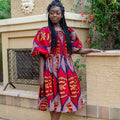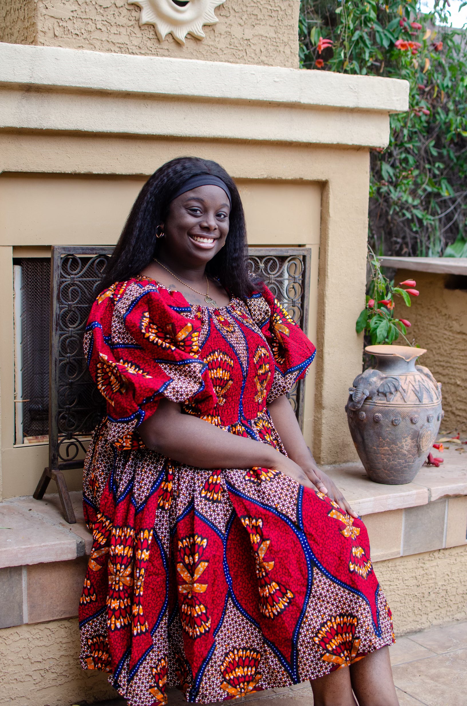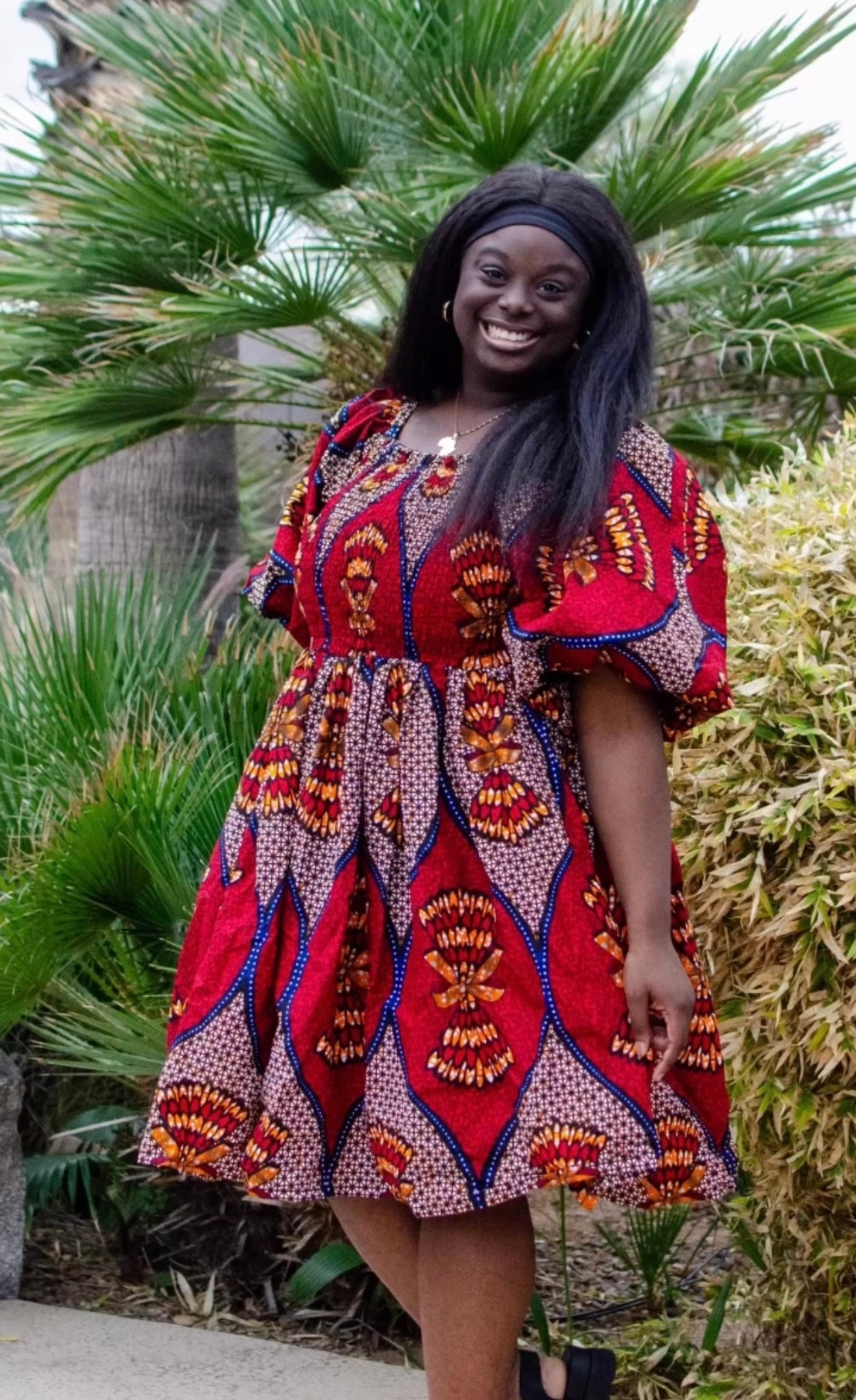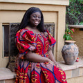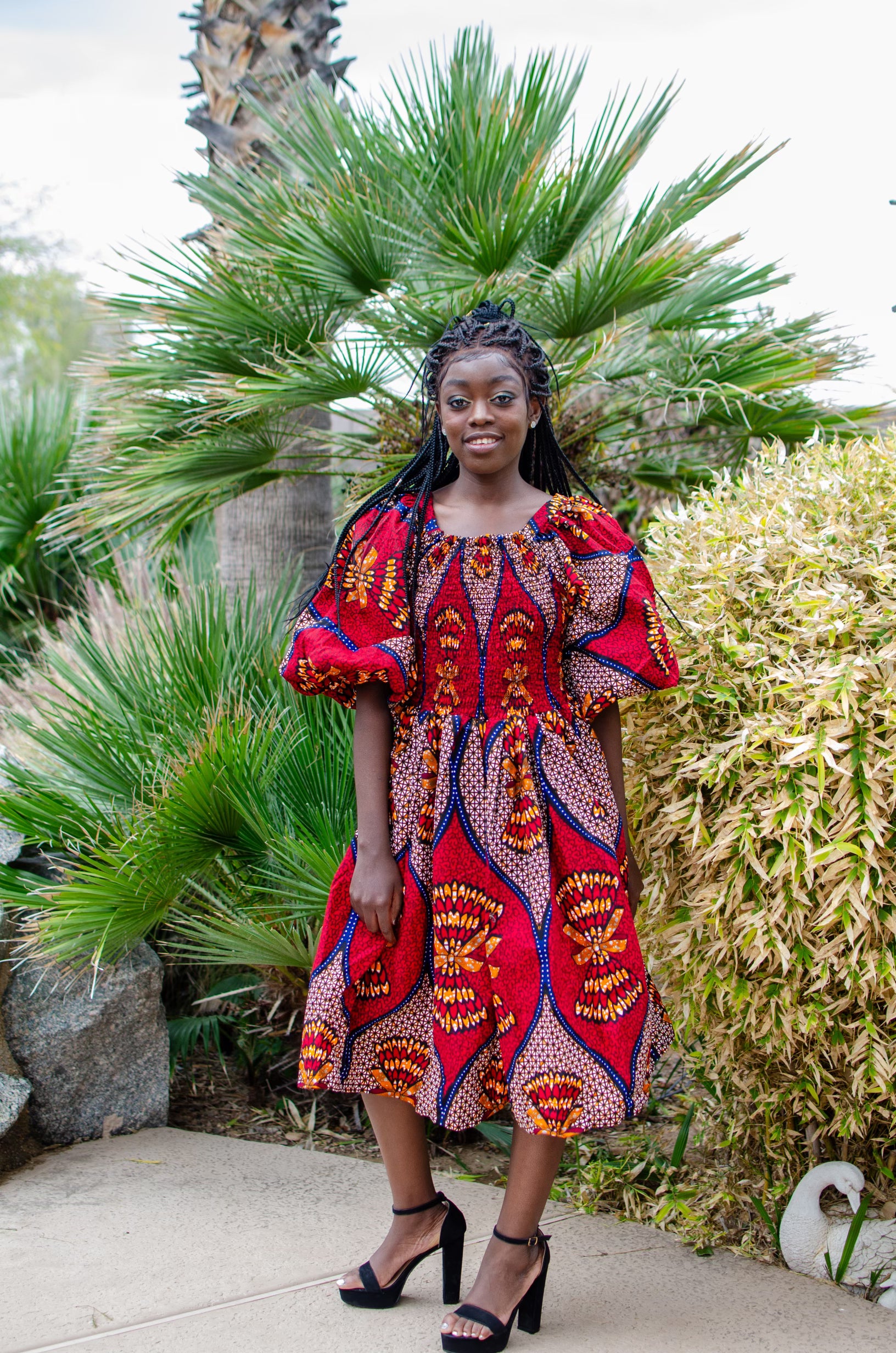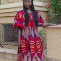 JOJO AFRICAN PRINT SMOCKED PUFF SLEEVE DRESS