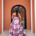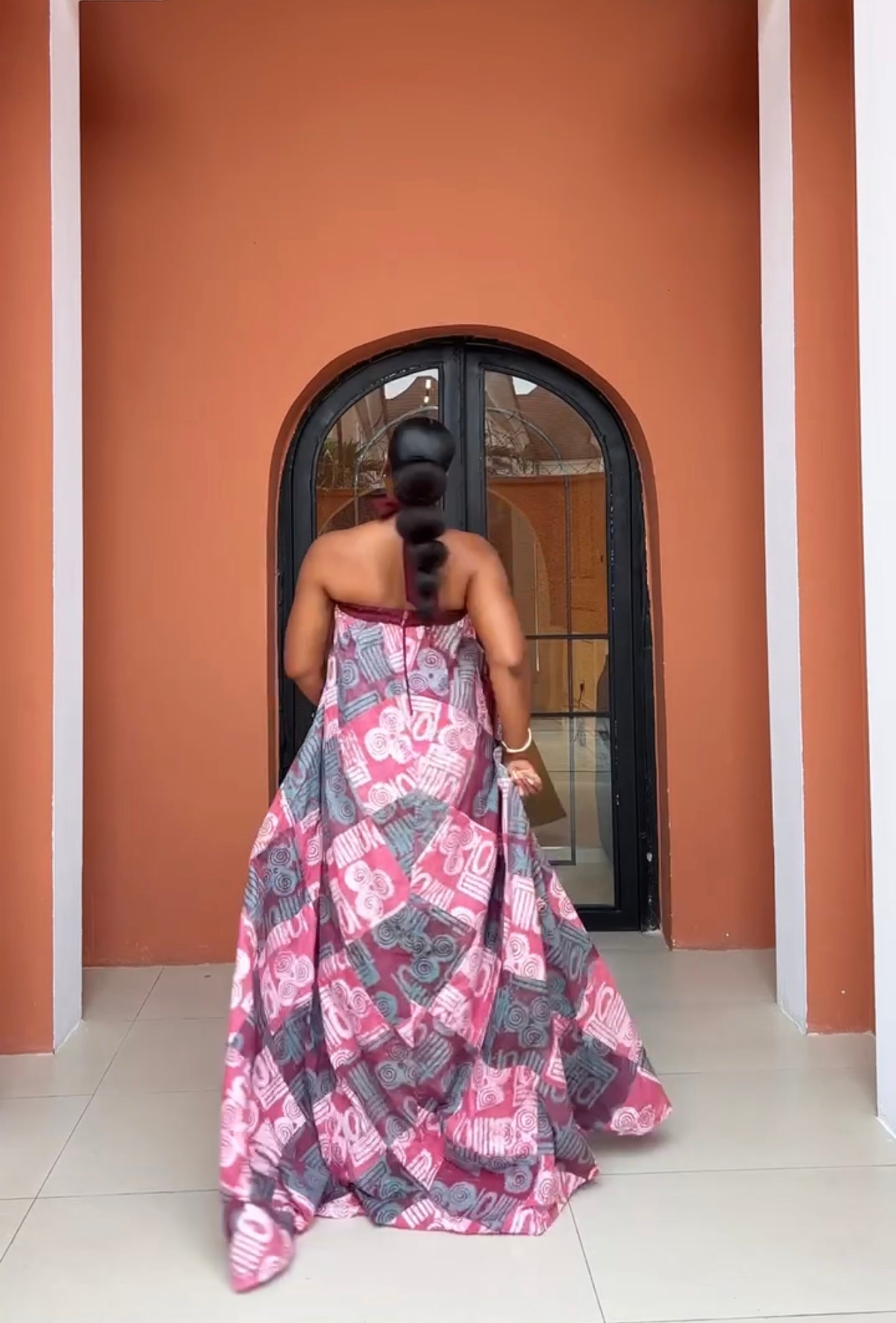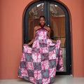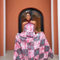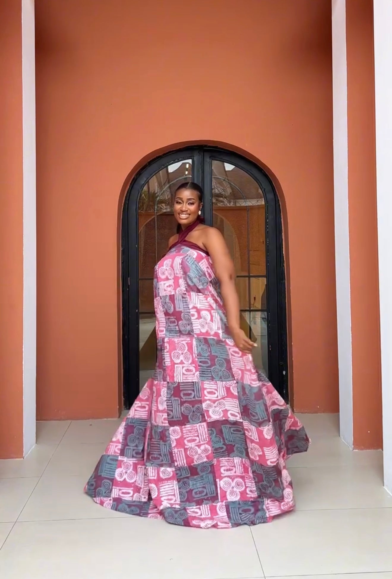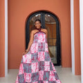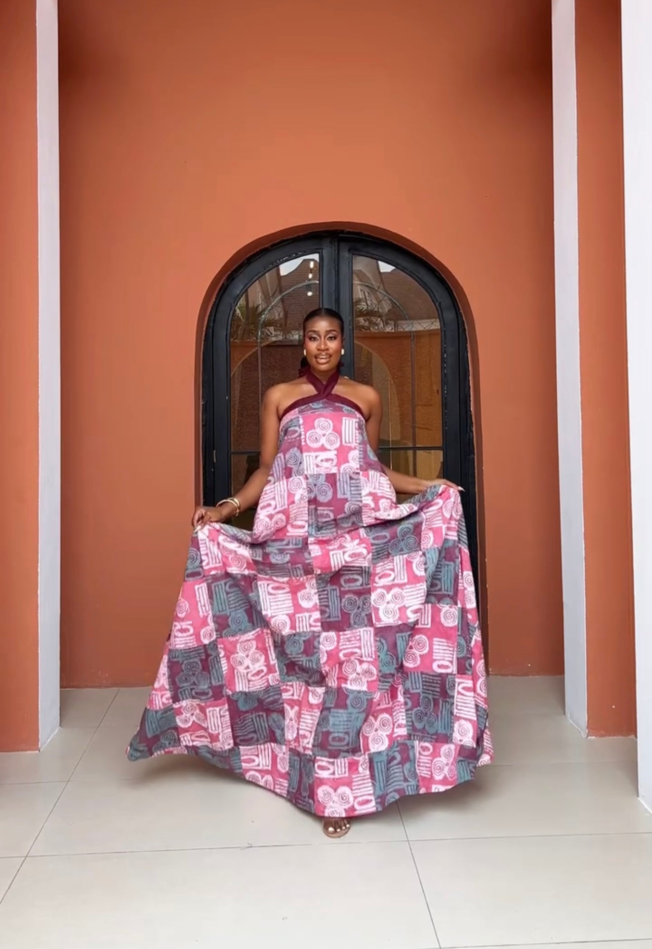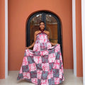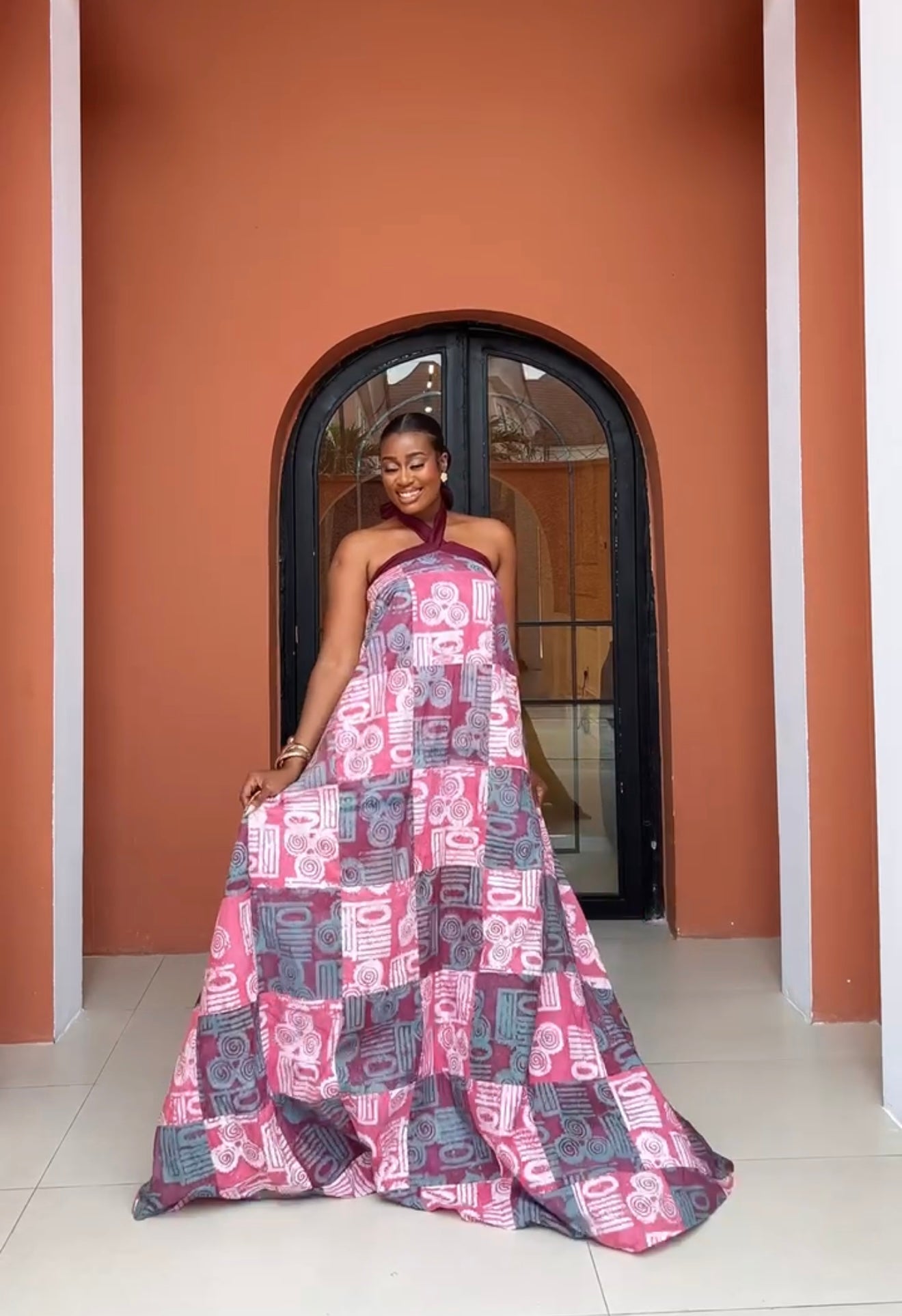 MORENIKE ADIRE HALTER MAXI DRESS – PINK & TEAL-BLUE HAND-DYED BEAUTY