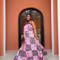 Turn heads in our Adire Halter Maxi Dress, a stunning blend of African heritage and modern elegance. Crafted from 100% cotton and hand-dyed by skilled Nigerian artisans, this flowy silhouette features a flattering halter neckline, breezy maxi length, and unique indigo-and-white patterns that ensure no two dresses are ever the same.