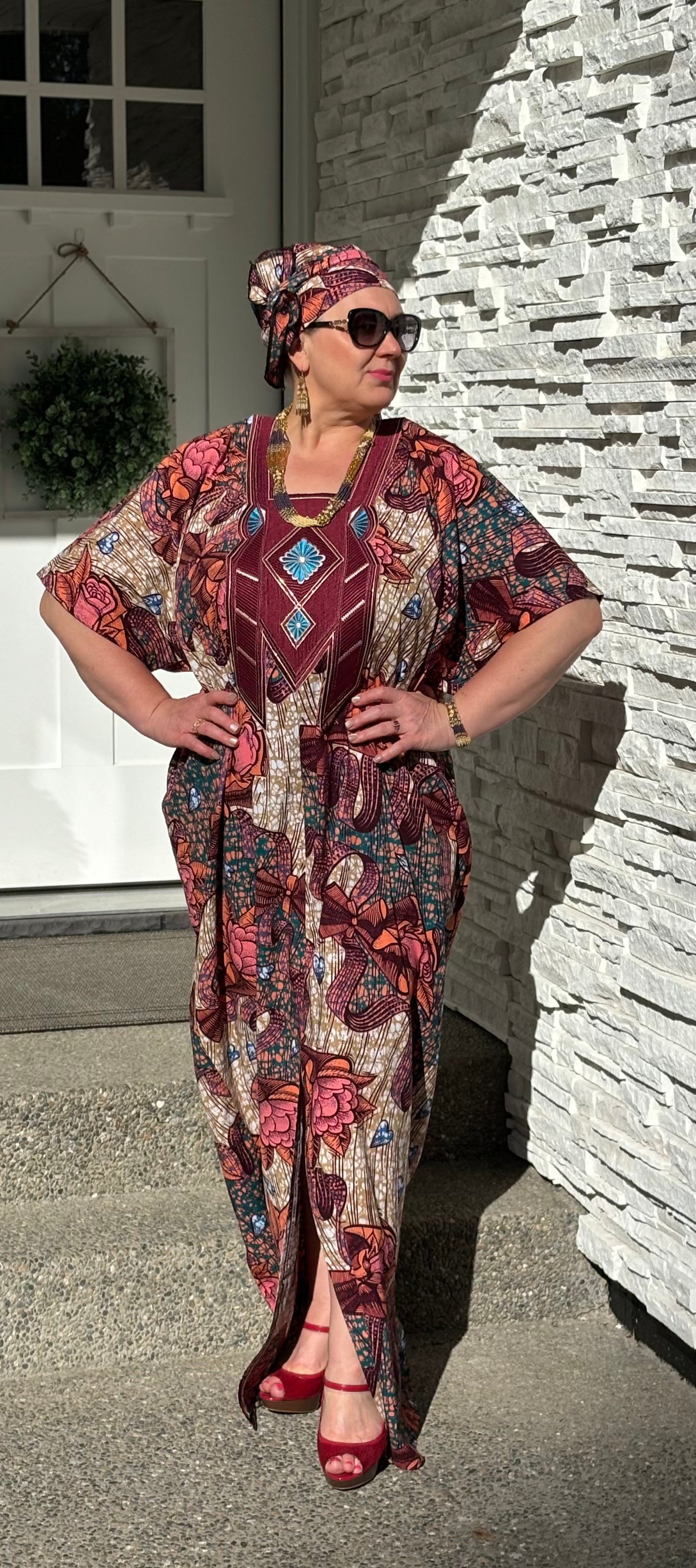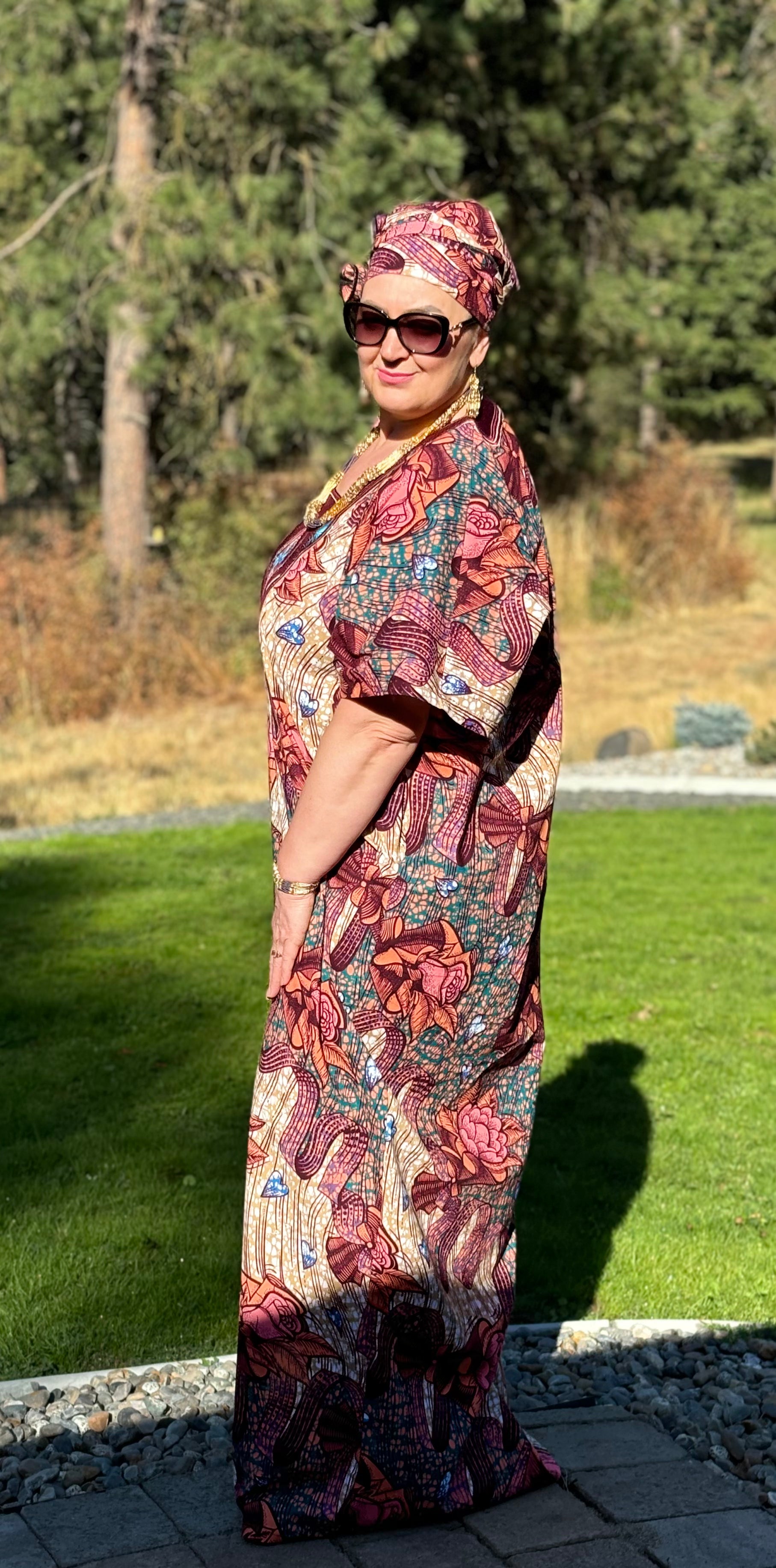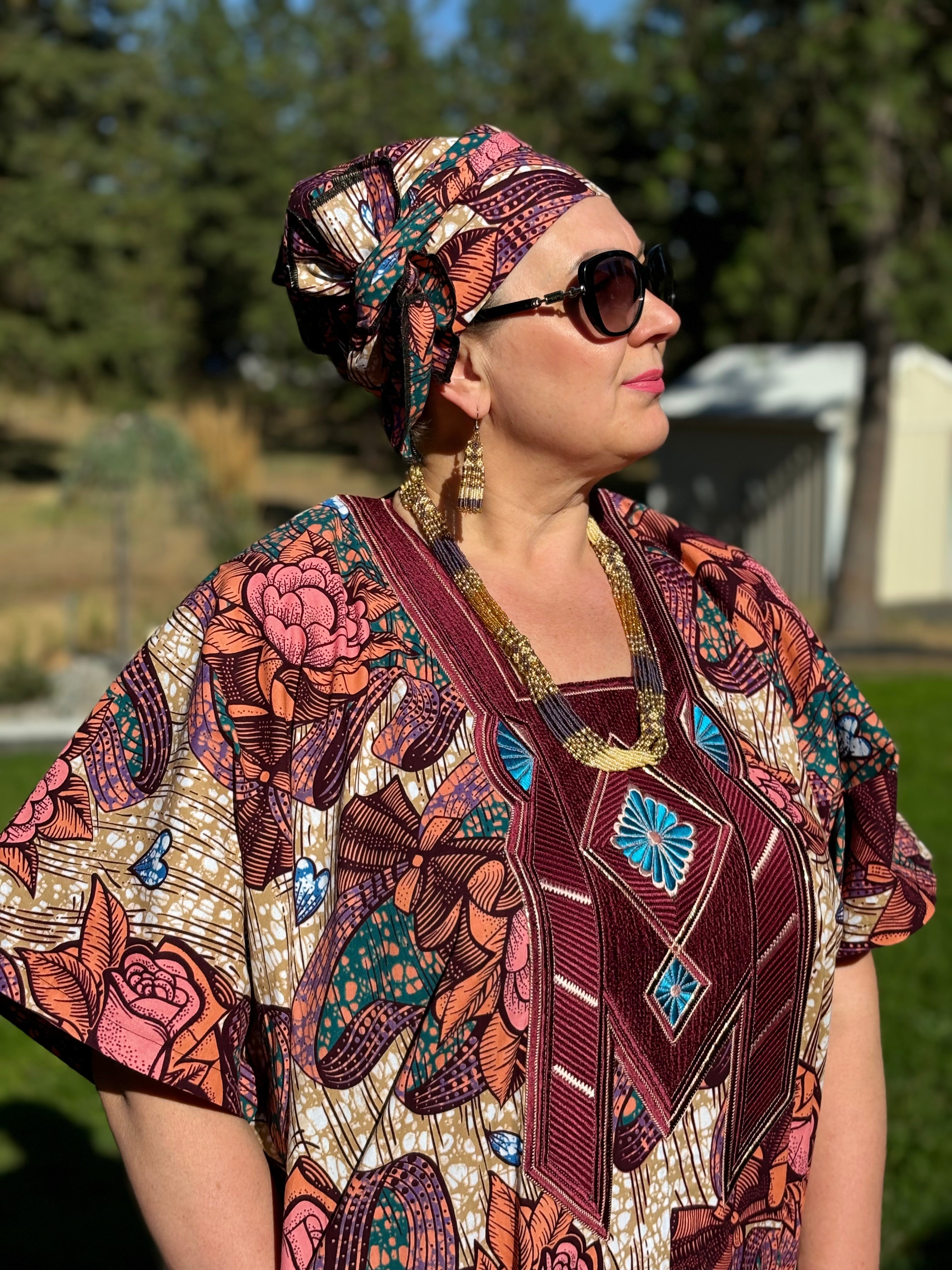 MBALI WOMEN'S AFRICAN PRINT EMBROIDERED FLORAL CAFTAN BUBU