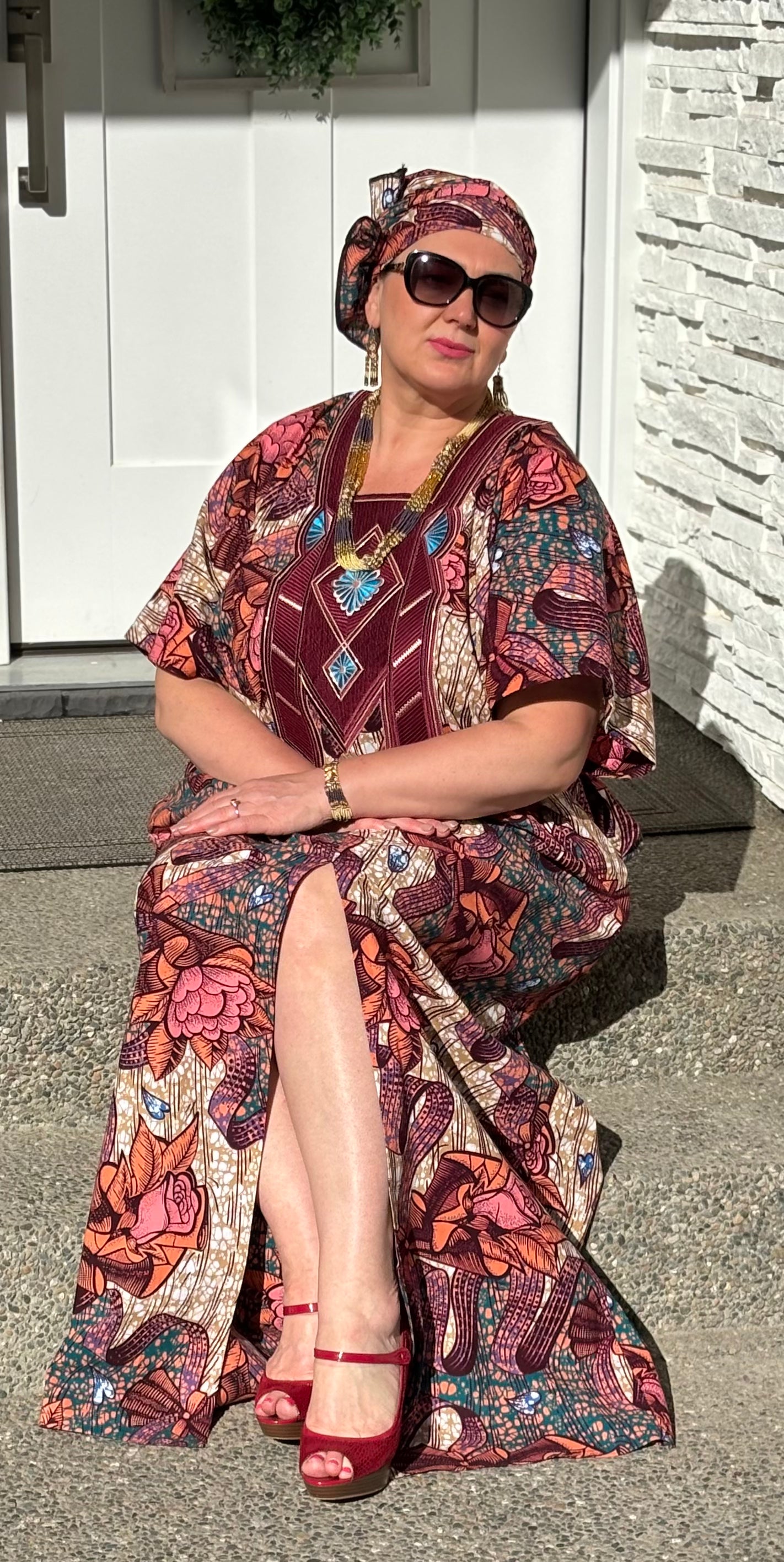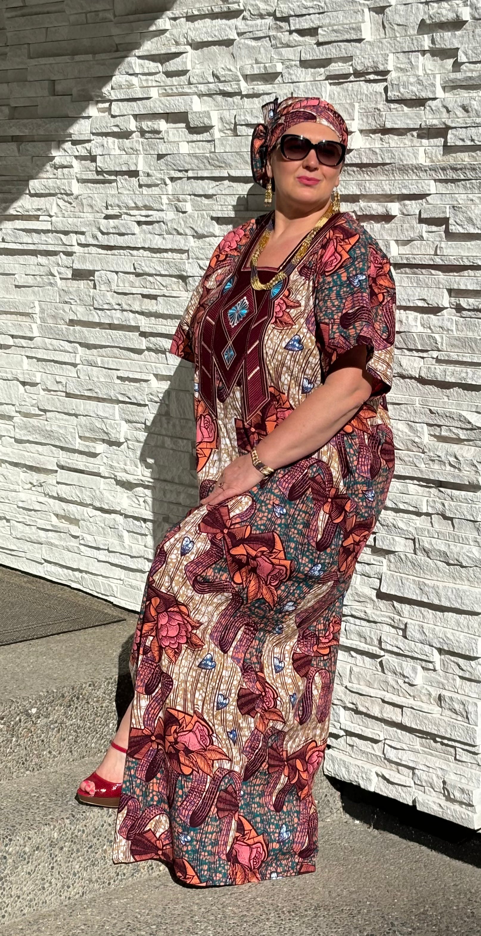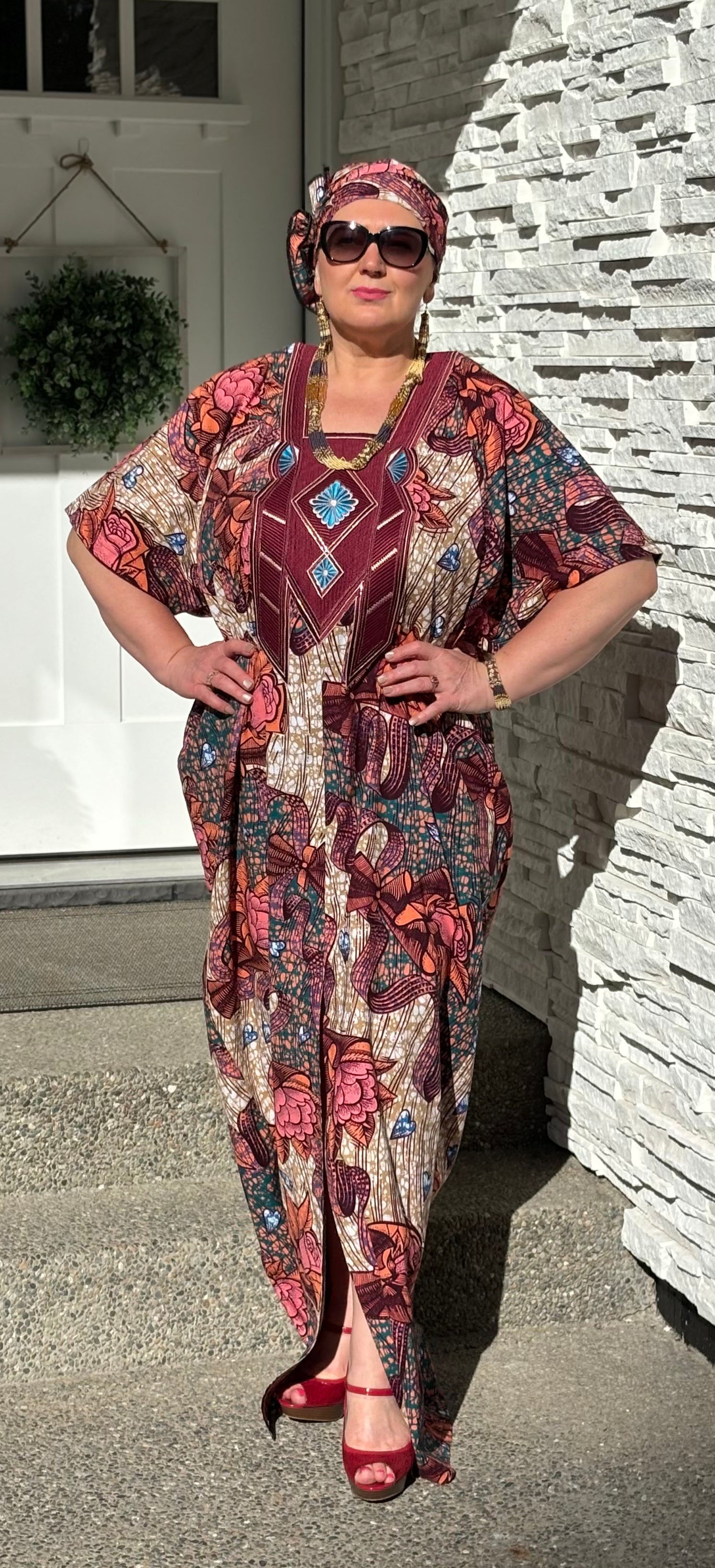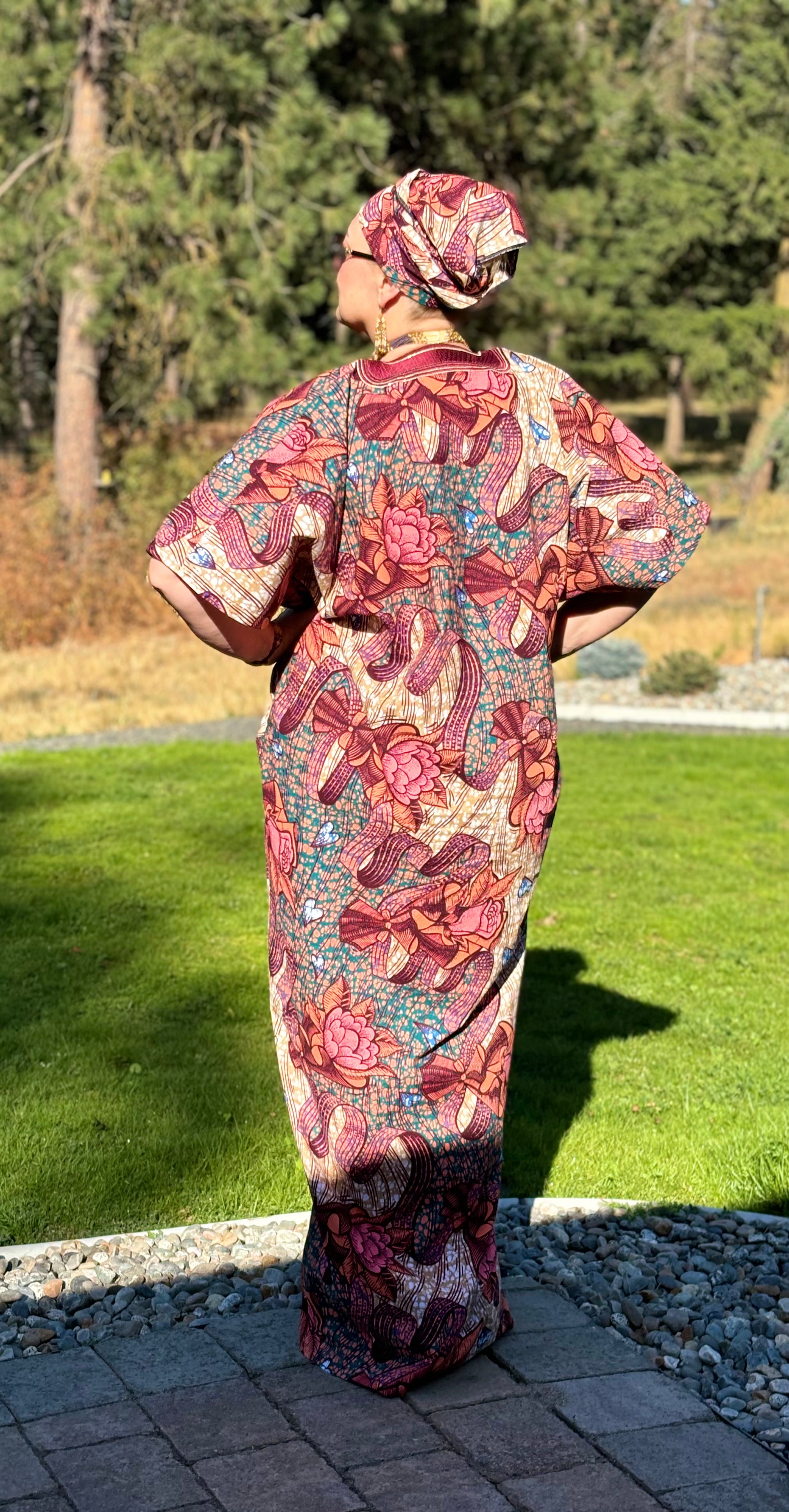 MBALI WOMEN'S AFRICAN PRINT EMBROIDERED FLORAL CAFTAN BUBU