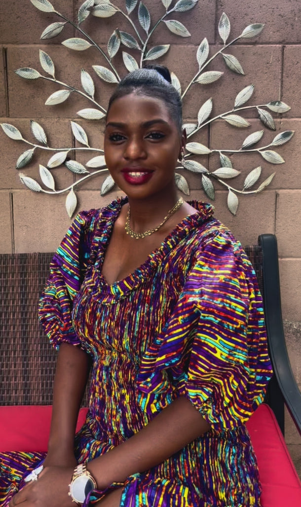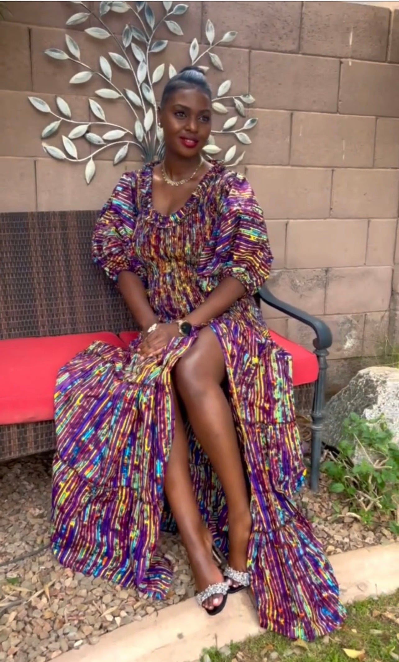 Our OHEMAA African Print Smocked Maxi Dress Is The Perfect Dress For Your Formal Occasions. A Unique Piece For Sure. This Beautiful Geometric Ankara Print Gown Hugs You In All The Right Places, And Makes You Look stunning! Who Can Ever Forget Seeing You In This Dress?