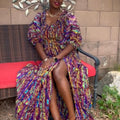 OHEMAA WOMEN'S AFRICAN PRINT SMOCKED MAXI FORMAL DRESS