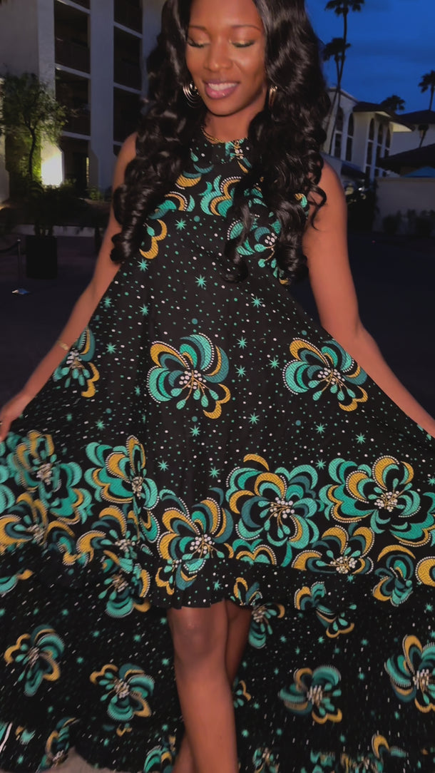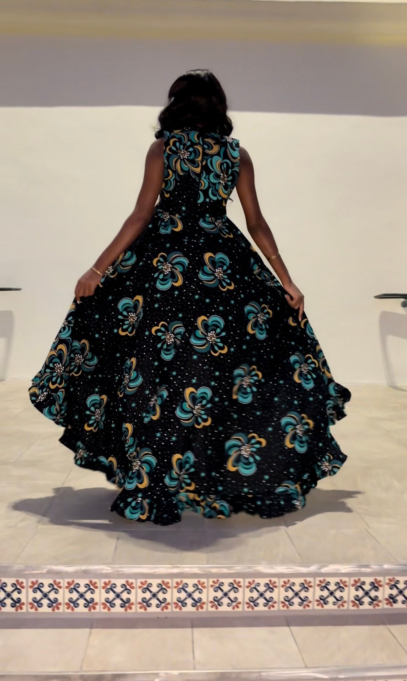 The Sakaa African Print Hi-Low Maxi Evening Dress is the perfect dress for your formal occasions. A beautiful dreamy floral Ankara print dress that will make you look absolutely stunning! Who can forget seeing you in this dress? Look Unique. Know You Are Beautiful.