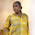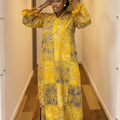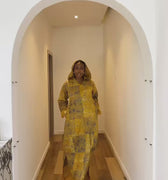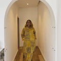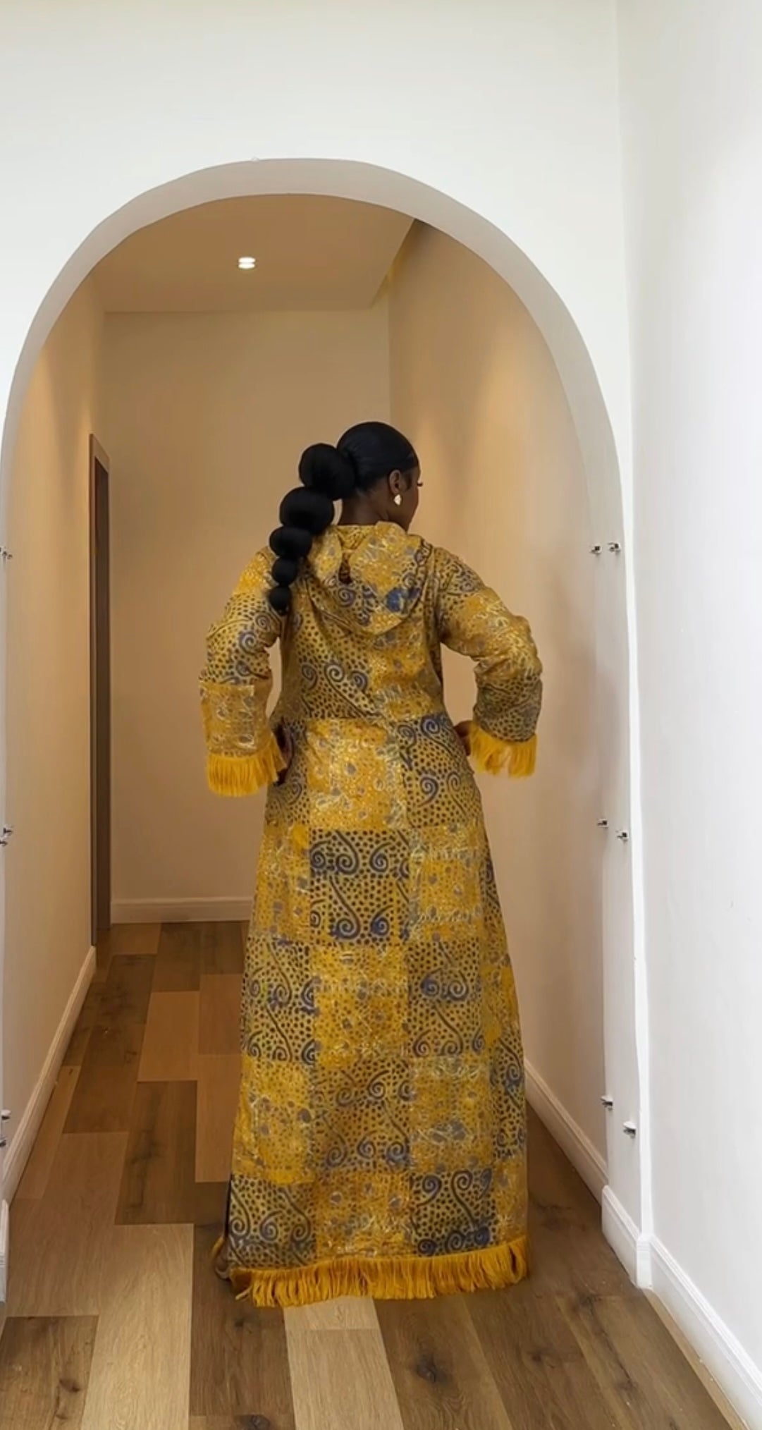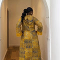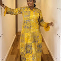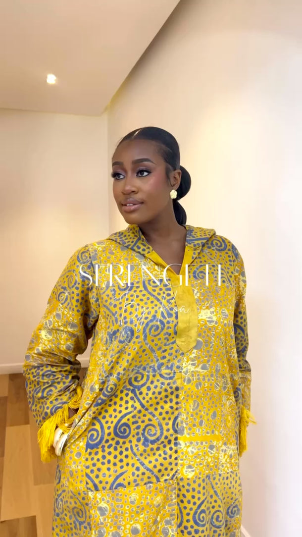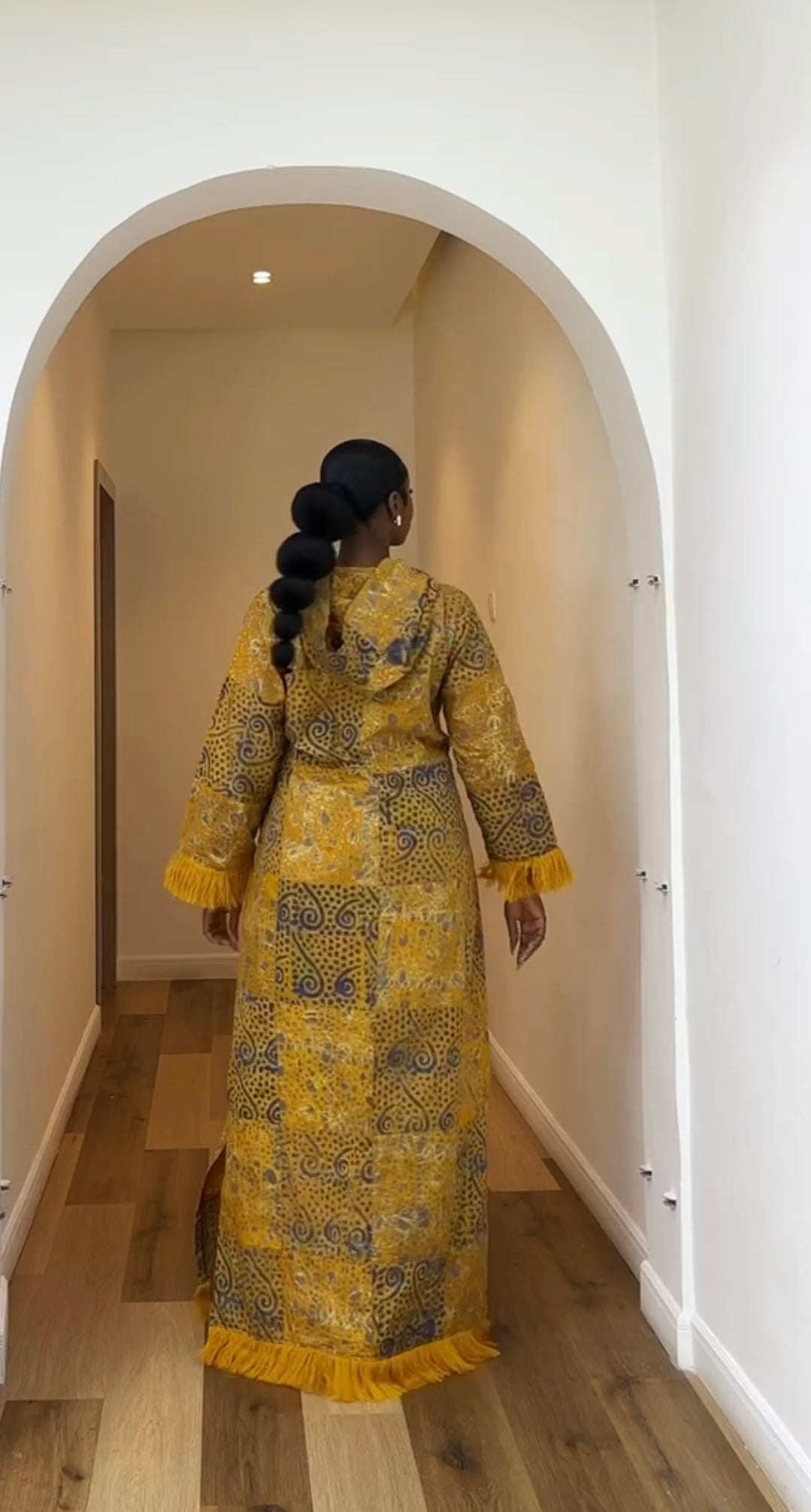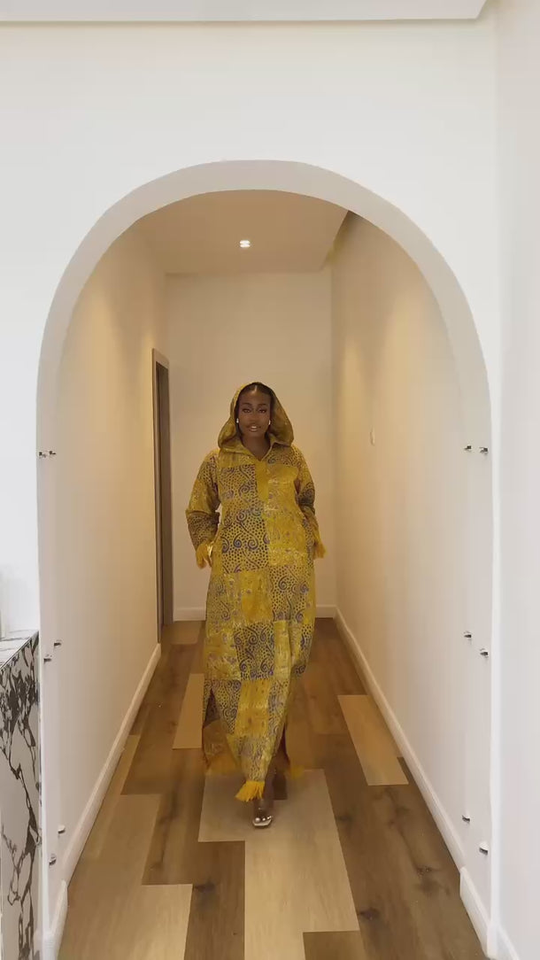 SIKA GOLDEN ADIRE PATCH KAFTAN WITH ASOKE FRINGE - LUXE AFRICAN MAXI